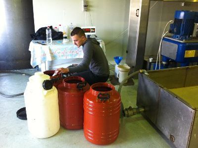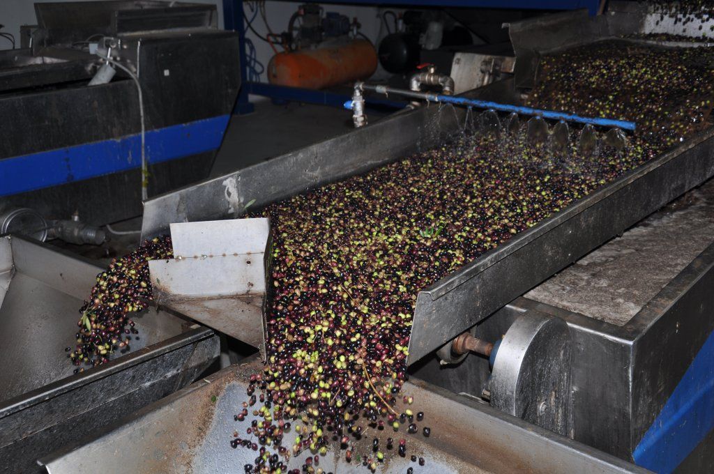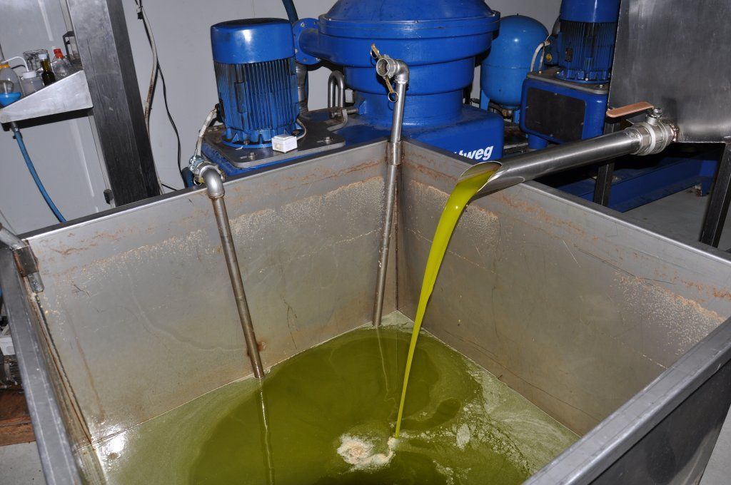 Then the olives are pressed and the oil is separated from the waste. A process that takes about 2 hours. 4.5 kilograms of olives produce about one liter of oil.